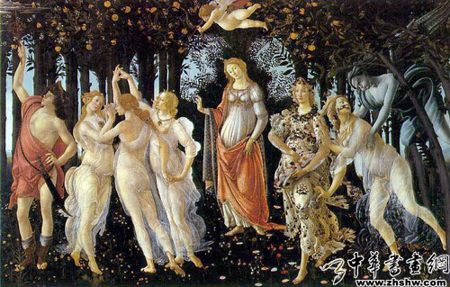 这幅画取材于诗人波利齐亚诺的诗歌。艺术家以自己的思想去解释古代神话中的形象,画面的情节是在一个优美雅静的树林里展开的,美丽端庄的维纳斯位居中央,她以闲散幽雅的表情等待着春之降临。在她左右,三位女神(阿格莱亚、赛莱亚、攸夫罗西尼)互相携手翩翩而舞,在维纳斯的左边,春神弗罗娜正以优美飘逸的健步向观者迎面而来,她全身披戴着饰花的盛装身后是春风之神莎菲尔和一位希腊少女。这种对于人性的赞美,在波提切利的作品中具有非凡的美感。而且,波提切利以其秀逸的风格、明丽灿烂的色彩和流畅轻灵的线条,在文艺复兴诸大家中独树一帜。但在文艺复兴后,有较长时期西方人士未能对他作出恰当评价,直到19世纪浪漫主义和英国拉菲尔前派运动中,他才倍受赞扬,被人们推崇为意大利文艺复兴前期的大师。由于他极善于运用线条,与东方艺术有异曲同工之妙,这一点也深得中国及日本研究者的重视。
